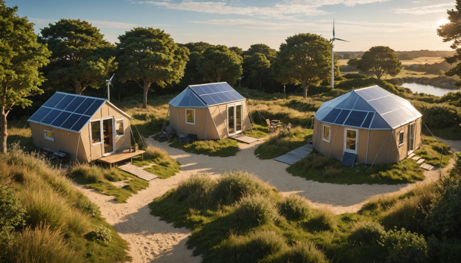 - Panneaux solaires : production d'électricité renouvelable pour alimenter les sanitaires, l'éclairage commun et parfois les hébergements. Un camping environnemental 56 authentique affiche souvent sa production énergétique.